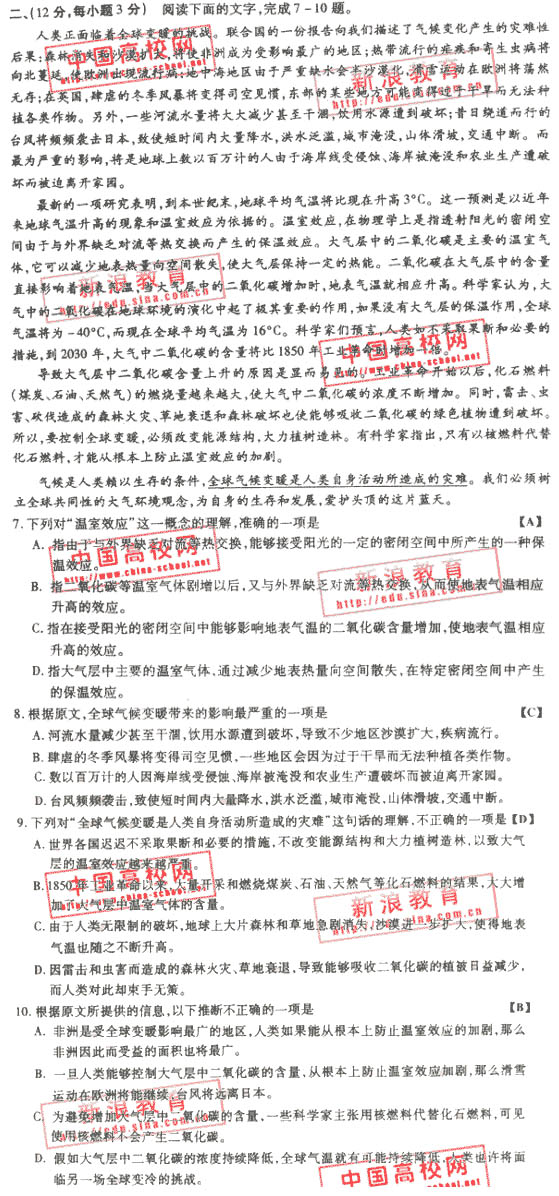 水電知識網»資訊»水利要聞»2003年高考:全球氣候變暖12分題進語文卷 三峽移民入文科綜合卷