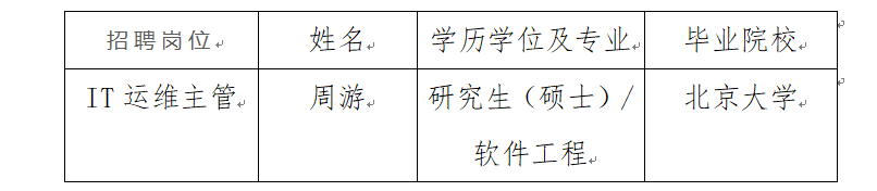 奔流電子音像出版(北京)有限公司根據中國水利水電出版傳媒集團招聘管理辦法和公司招聘實施方案,確定周游為擬聘用人選,現予以公示。公示期間,如有問題,請向我司反映。