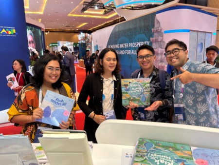 5月22日上午,水利部、世界水理事會、印尼公共工程和公共住房部、烏茲別克斯坦水利部負(fù)責(zé)人和中國駐印尼登巴薩總領(lǐng)事共同巡視中國館并出席在中國館舉行的論壇主題繪本等五種新書發(fā)布儀式。其中兩種是以“水促進(jìn)共享繁榮”為主題的圖書,另外三種是以國內(nèi)外青少年為讀者對象的水利科普圖書。《一滴水》《水與人類——水精靈的全球水之旅》這兩個繪本是中國水利部與世界水理事會合作出版的最新成果,分別以中、英、法、印尼四種語言版本出版;《你好,大壩》、《節(jié)水總動員之江小惜的時光旅行》以中、英版本出版;《小蚯蚓尋龍記》以中文版本出版。這些作品分別由中國水利部與世界水理事會、南京水利科學(xué)研究院、江西省水利科學(xué)院、中國水利博物館會同中國水利水電出版社聯(lián)合推出,旨在全球范圍內(nèi)普及水知識與節(jié)水理念,激發(fā)青少年對水世界的探索興趣。