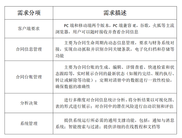 本項(xiàng)目旨在為我單位采購一套經(jīng)濟(jì)合同管理系統(tǒng),以提升合同管理效率,降低合同風(fēng)險(xiǎn),優(yōu)化合同執(zhí)行流程,實(shí)現(xiàn)合同管理的全面優(yōu)化與價(jià)值最大化。項(xiàng)目預(yù)算已明確,將采用詢比采購的方式,誠邀具備相關(guān)資質(zhì)、技術(shù)實(shí)力和服務(wù)經(jīng)驗(yàn)的供應(yīng)商參與詢比,提供高質(zhì)量的解決方案和服務(wù),共同推動(dòng)本單位合同管理水平的全面提升。