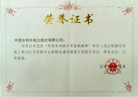 10月21日,中宣部國家新聞出版署公布了出版融合發展工程2021年度入選項目。由水利部選送、中國水利水電出版社有限公司建設運營的“中國水利統計年鑒數據庫”成功入選數字